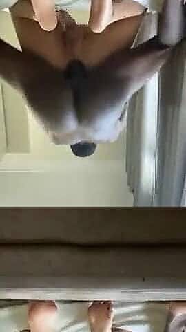 Horny Ebony TBabe in Stockings Dildoing on Webcam 3