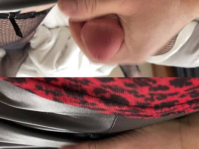 Cumming on my black leather skirt