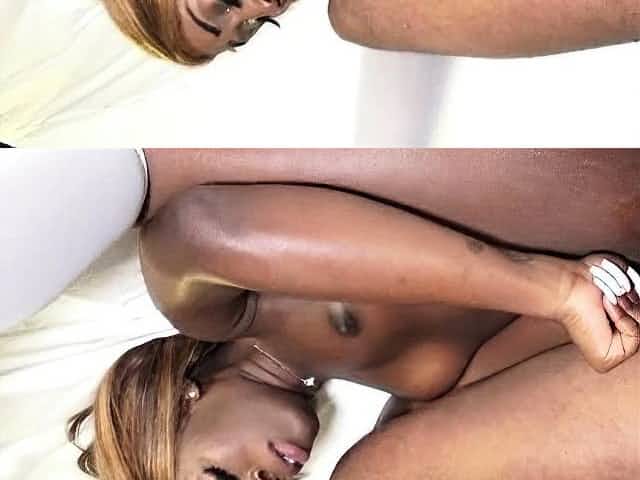 Busty shemale seduces her black neighbor to fuck her wet ass