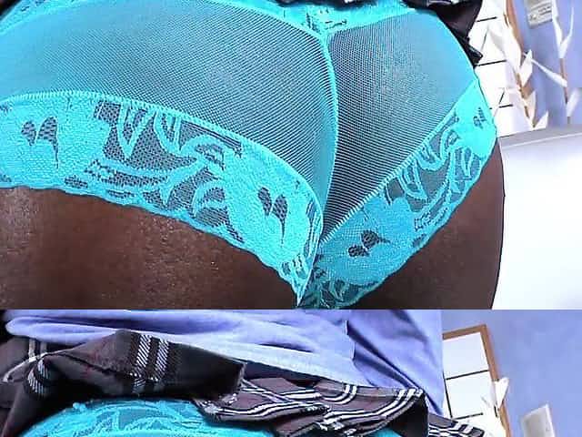 Black tgirl with big balls poses in ass revealing skirt