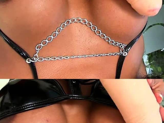 Black shemale in sexy leather corset shaking her massive ass