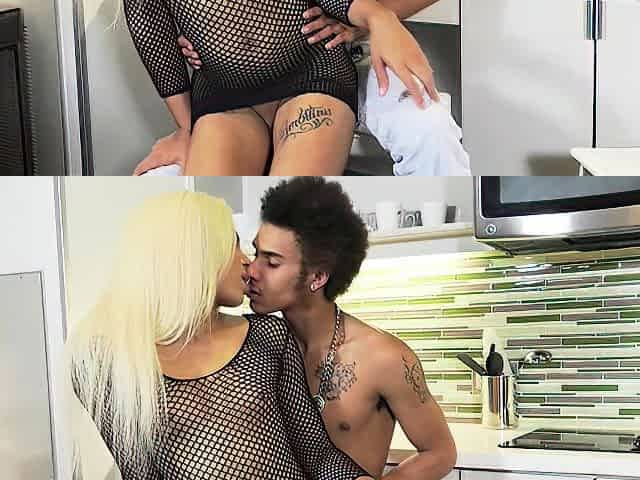 Blonde tranny Aubrey Kate gets fucked by a black man