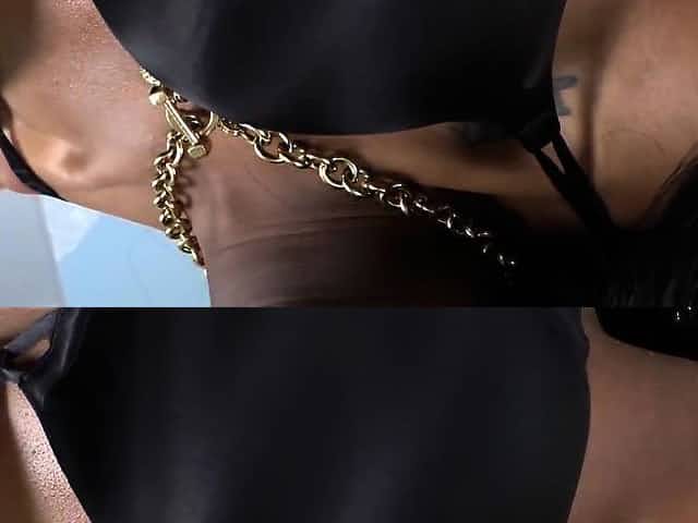 Naughty ebony t-girl strokes her extreme black mamba shecock