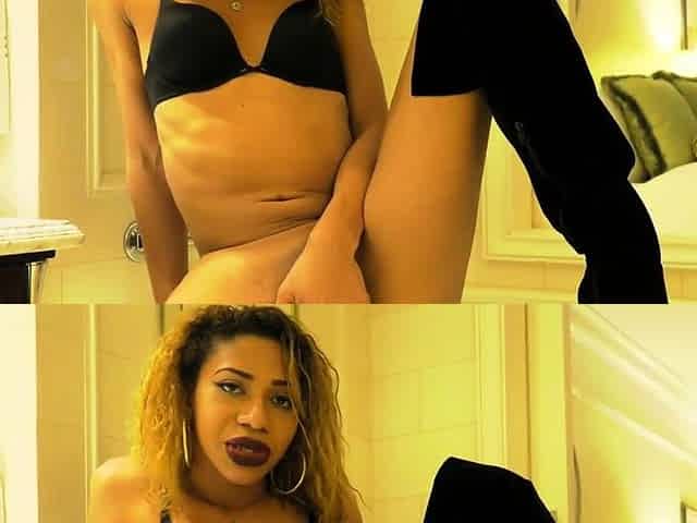 FULL video of naughty black tranny beauty jerking shecock