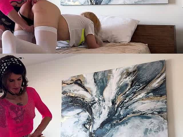 Two HOT trannies tag team lucky guy anal