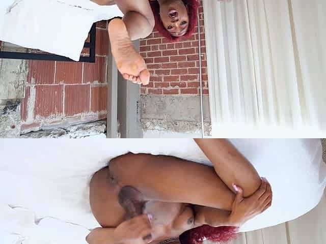Black ebony shemale tranny masturbates