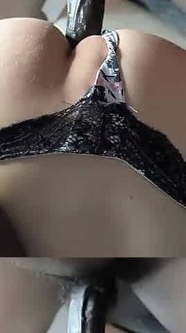 Beautiful shemale stuff a black dildo up her ass