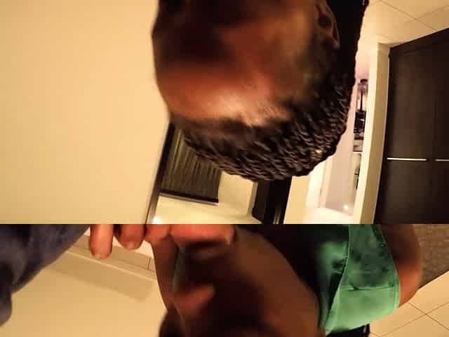 Ebony slut sucks cock on her knees