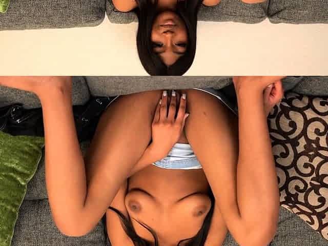 Ebony teen toying pussy