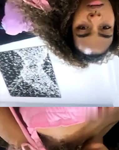 Ebony nympho squirts in lezbo gf's face on webcam