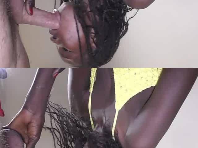Black Girl Panty Fucked and Gives Nice Sloppy Blowjob