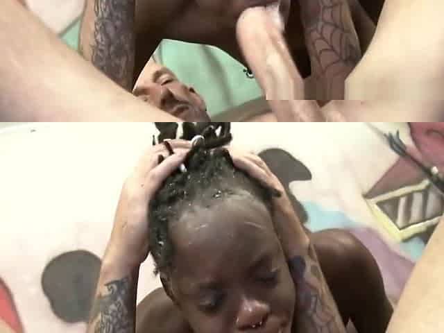 Two White Guys Smashing Black Girl Together In Threesome