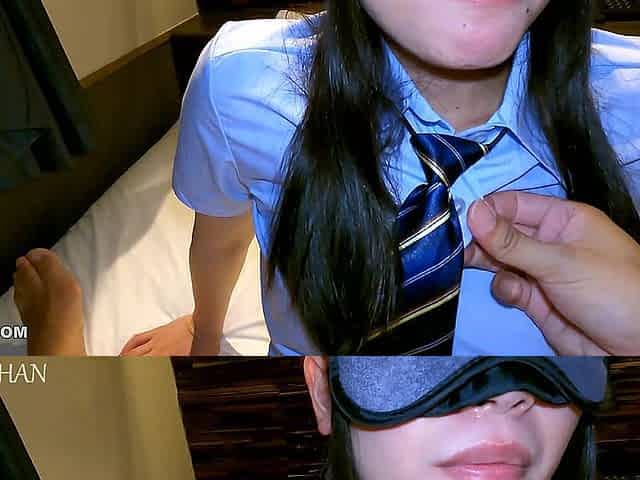 Blindfolded Asian girl gets pussy fingered
