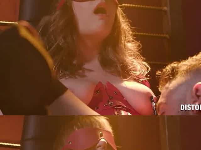 Blindfolded brunette hair amateur hotty gets fastened up and rammed from behind