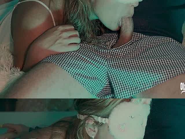 Girlfriend deep sucking big dick lover after college - cum in mouth