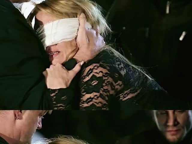 Sexy blond MILF Brittany Bardot gets blind folded and mouth fucked rough