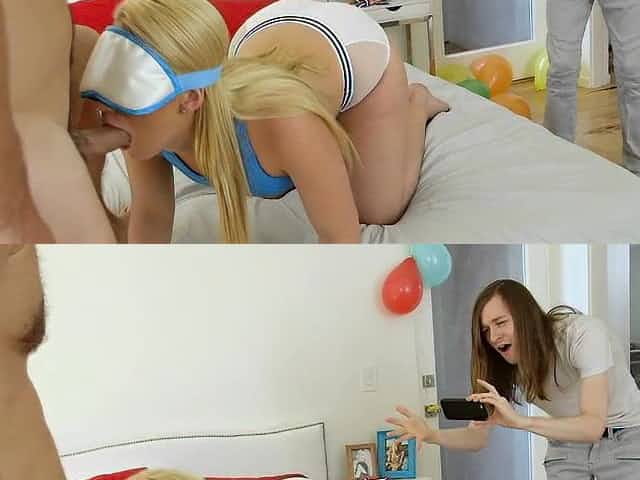 Guy blindfolded his blonde gf and got fucked by his buddy