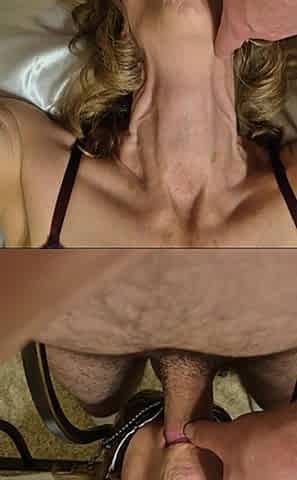 Second View of a MILF Hooded in Nylon, Blindfolded with Duct Tape, Facialized, and Cummed in Mouth