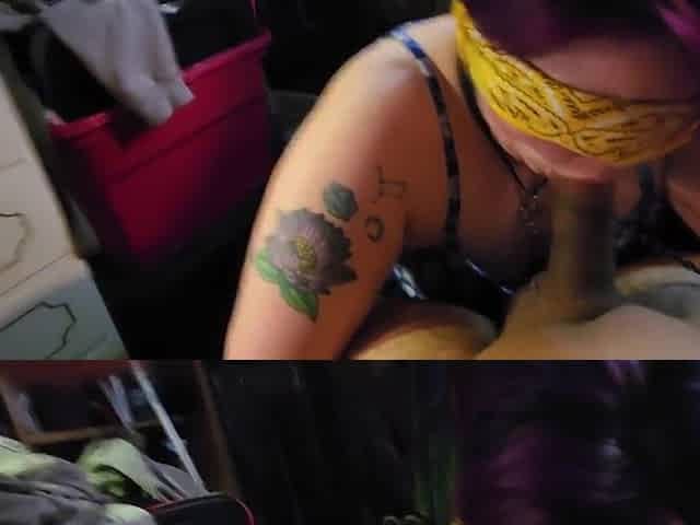 Woman with blindfold gives blowjob and squirts