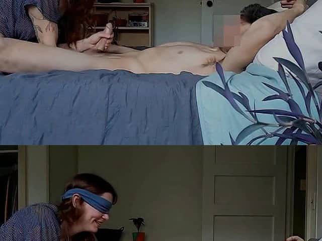 Blindfolded stud loves anything a random wman is doing to make him explode from fun