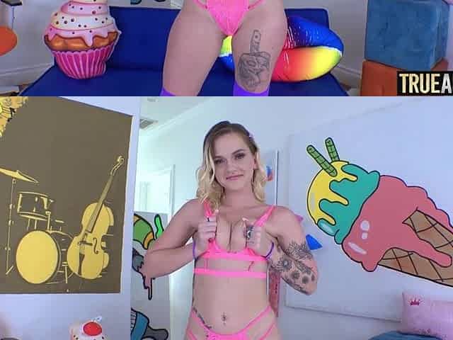 TRUE ANAL Petite tattooed blond Joey White has her taut arsehole stretched wide open