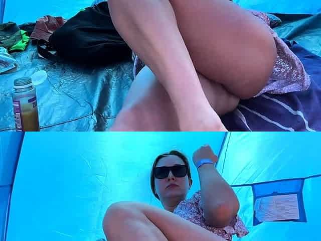Secret Outdoor Masturbation in a Tent- No Panties Under My