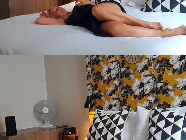 Mature blonde gets naked and has sex on the bed