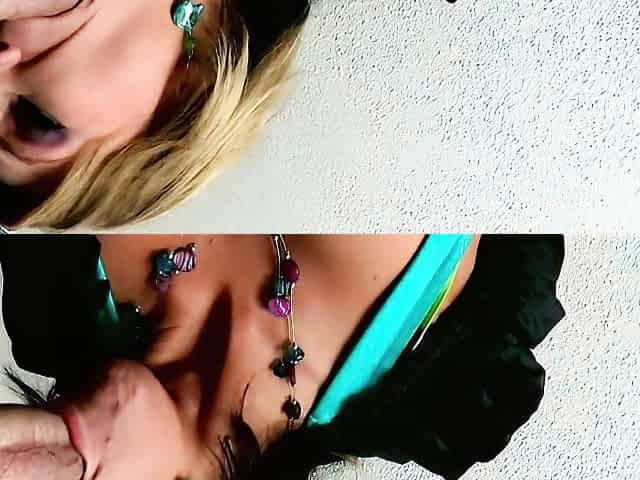 Mature blonde with long hair gives a sloppy blowjob