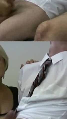 Chic Threesomes Scene-3_elegant Busty Blonde in Lingerie Fucking with a Mature Cock
