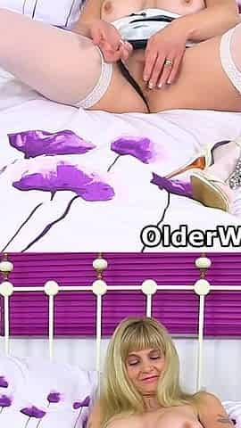Horny Blonde Mature Lady Erika Masturbates in Bed