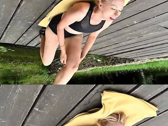 Mature euro blondie massages her pussy outdoors