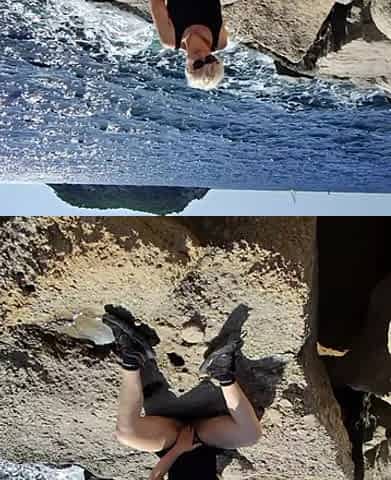 Stunning blonde MILF at outdoors photo shooting