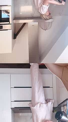Cali is cooking topless in the kitchen