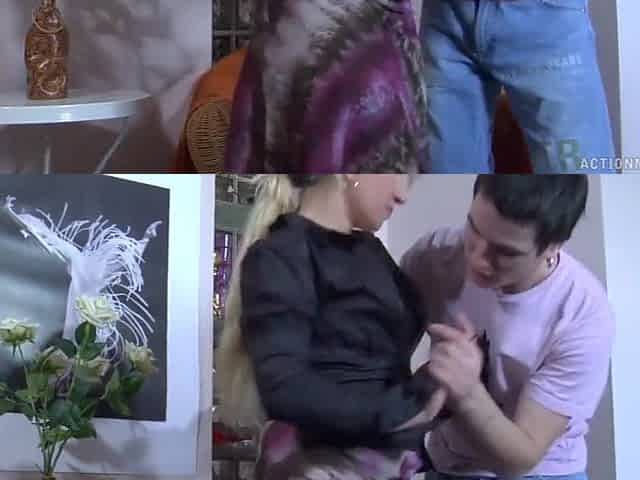 Lady Blonde And Ko Ko - Mature Blonde Lady Pleasuring Her Young Lover On The Couch