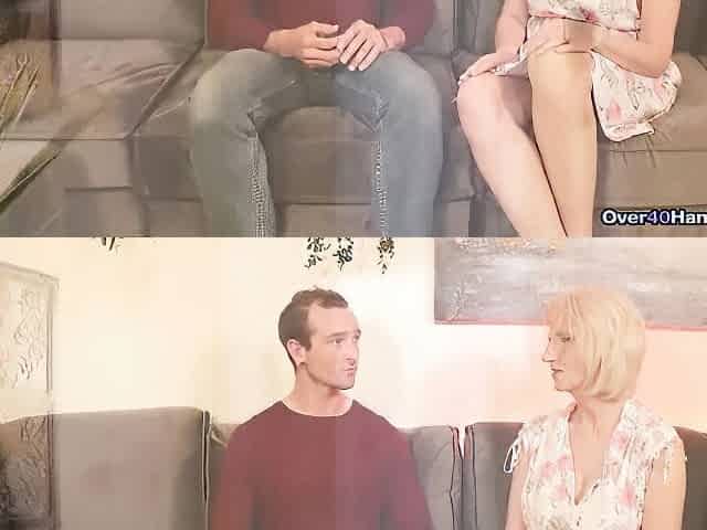 Mature blonde cougar fucks hot young man