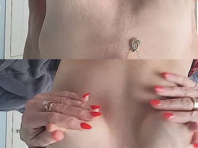 Playing with hubby's penis and this chab cums on my b00bs.