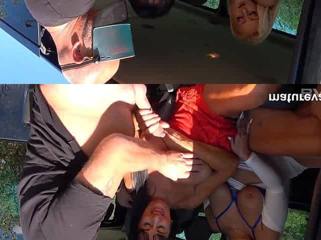 Blonde MILF Sarah Fucked by Threesome Soldiers Outdoors