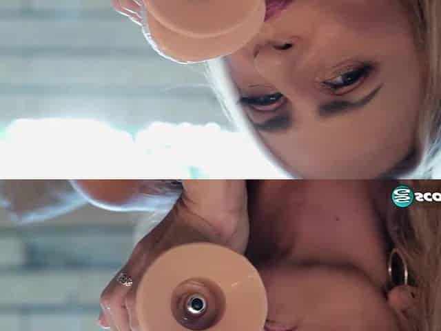 Big-boobed blonde Scarlet Andrews screwed in the sideways pose
