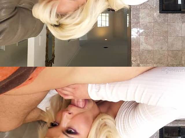 Great blowjob from the mature busty blonde