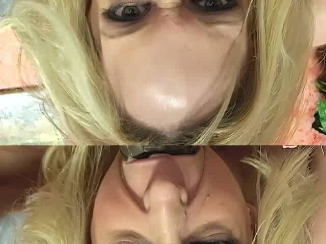 quirky blonde on stairs: face fuck quickie - facial