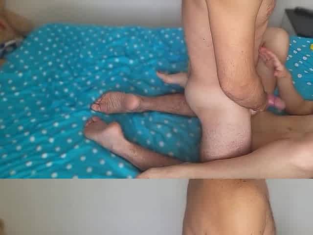I please my ally and masturbate with her stepson, large spunk flow on my butt
