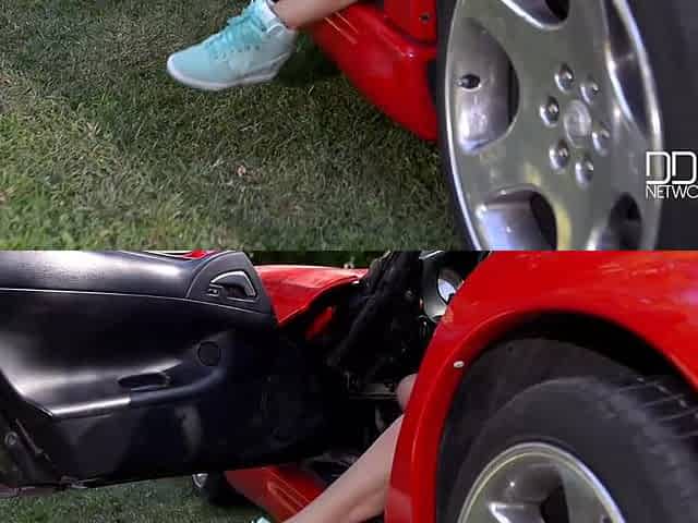 Airbags On The Hood: Busty Blonde's Big Tits Exposed