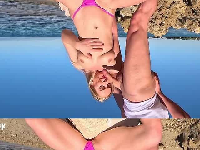 Blonde Babe Drooling on Throbbing Cock Outdoors