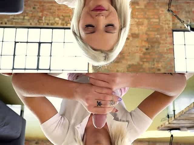 Close up with blonde hottie blowing a large dick