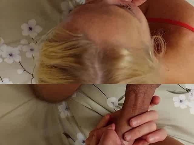 GORGEOUS BLONDE IN LINGERIE GETS MOUTHFUL OF CUM
