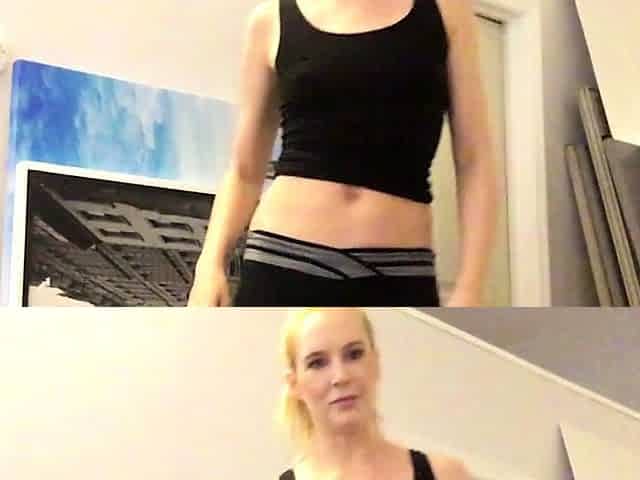 Aziani Iron busty blonde fitness babe takes off her tiny