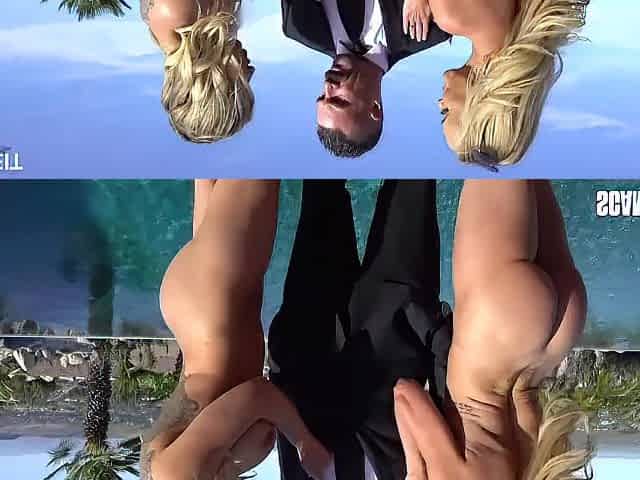 Stunning busty blonde milfs getting naked and toying ass