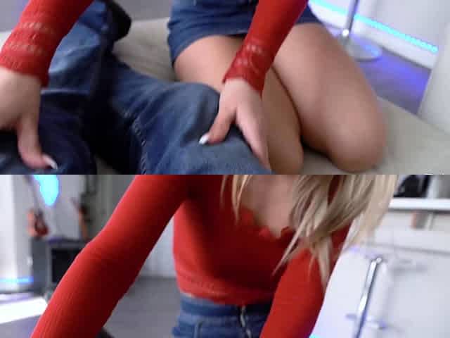 Blonde teen gives handjob and blowjob