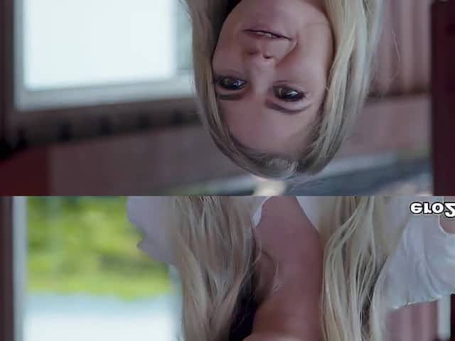 Fingering perky blonde teens oily butt before blowjob