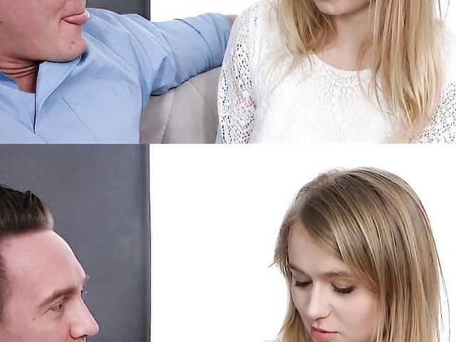 Naughty blonde daughter make the father her cum.
